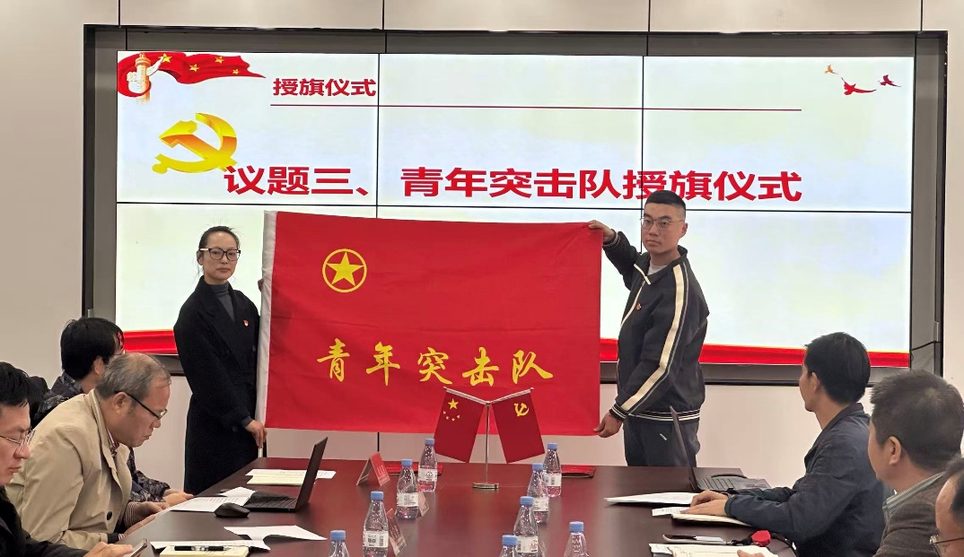 会议还成立了青年突击队,并进行了青年突击队授旗仪式。
