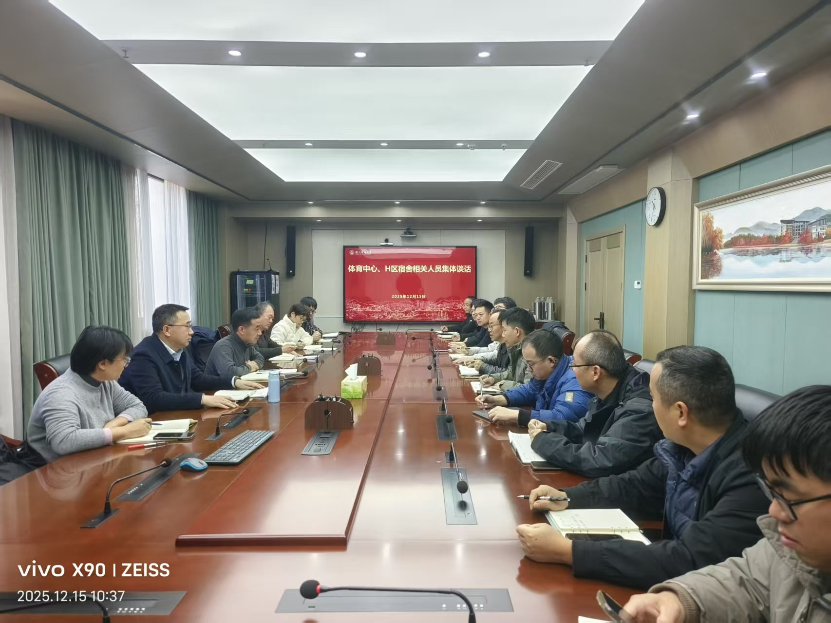 体育中心、H区学生宿舍建设项目各参建单位项目负责人分别汇报了项目施工、监理、跟踪审计工作情况并做了表态发言。