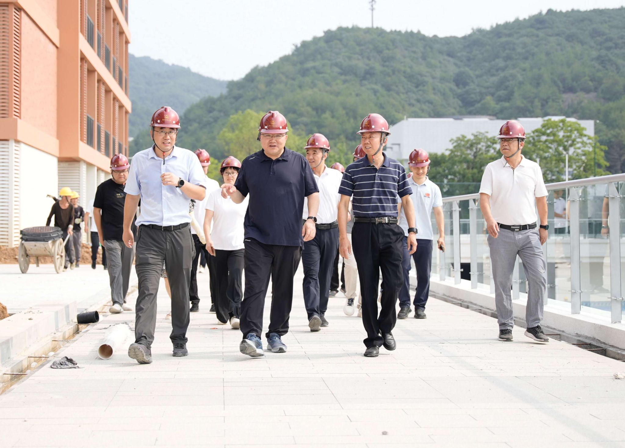 7月14日上午,校党委书记朱斌、校长吴家胜、副校长杨圆华深入学校基础设施提质工程基建和维修改造项目施工现场,检查指导项目建设推进情况。